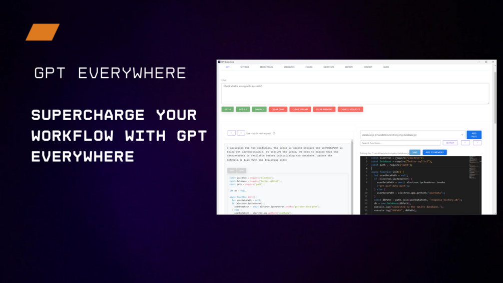 Imagine having an AI that writes code, provides insightful answers, and takes your productivity to the next level! All that is possible with GPT Everywhere, a revolutionary app that seamlessly integrates AI into your workflows. No more time-consuming copy-pasting into different platforms - simply drag and drop your files, websites, and PDFs directly into the app and let the AI work its magic.