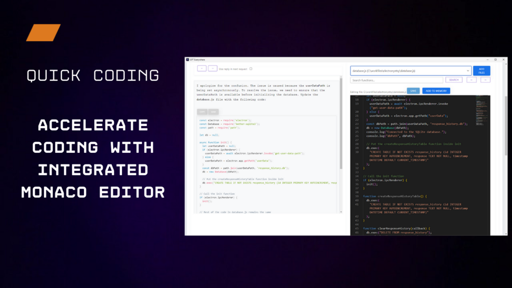 - Robust Monaco Editor: Develop, edit, and manage project files within the app using the versatile and integrated Monaco Editor.